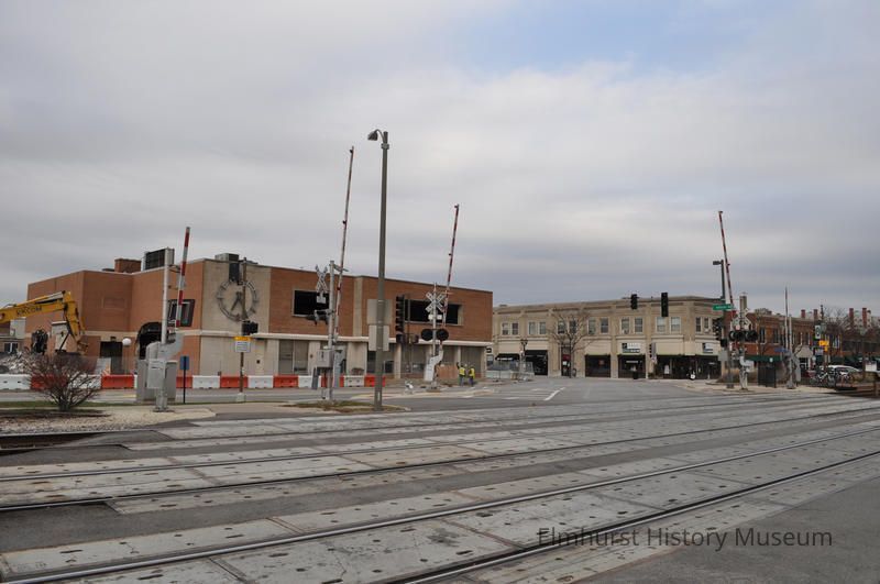Intersection of Addison Avenue and First Street, looking northeast from the railroad tracks. 100 N. Addison is in the process of being demolished.Photograph Details