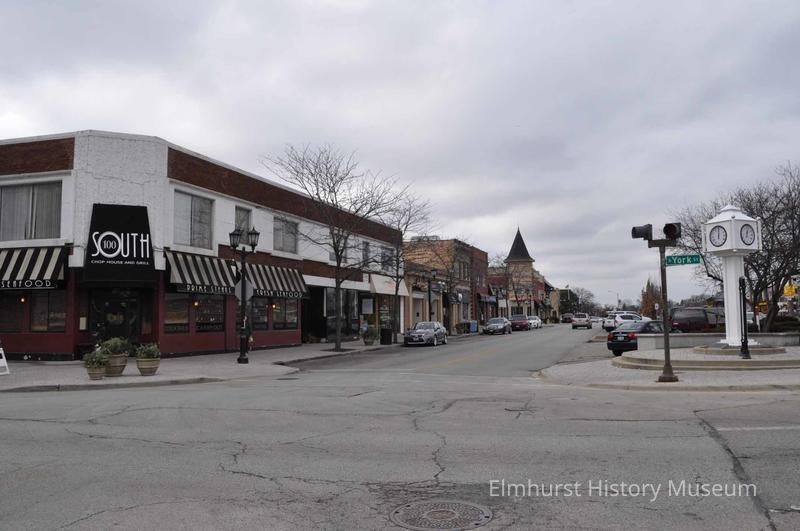 W. Park Street looking west from S. York Street. 100 South restaurant is at left.Photograph Details
