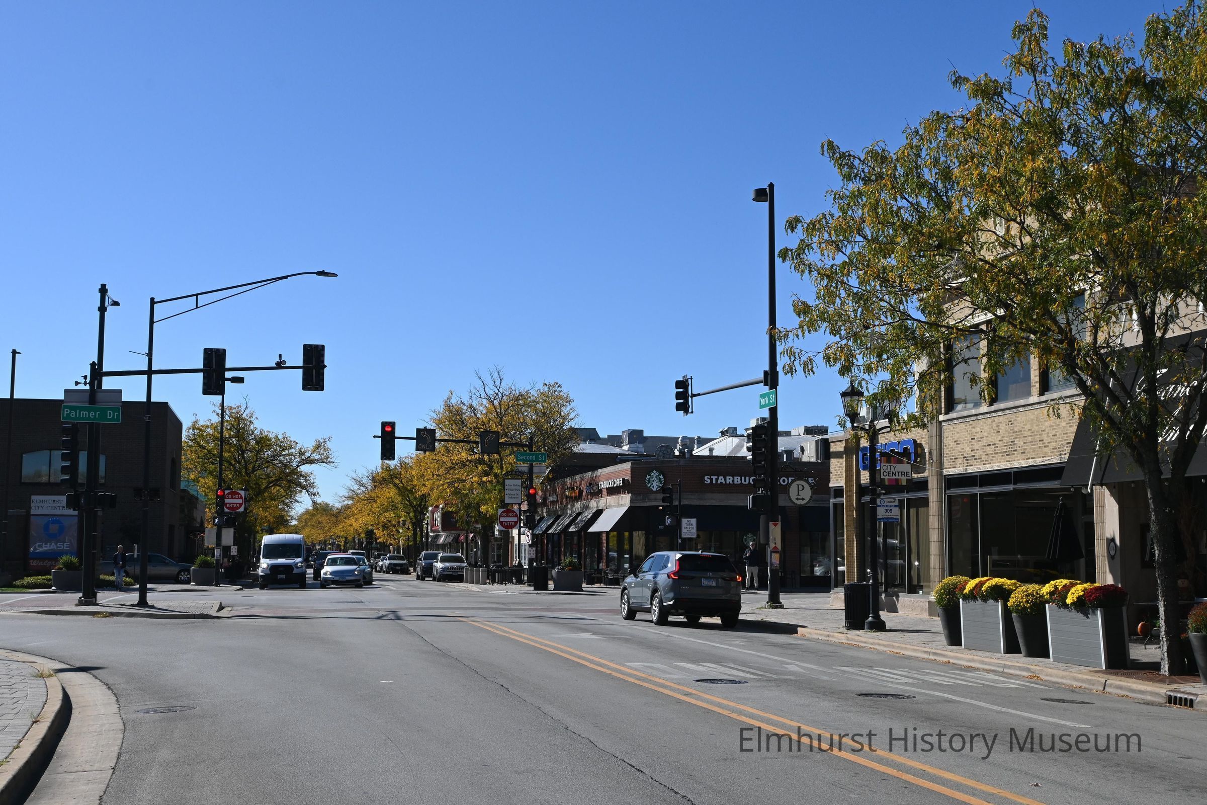 N. York Street looking south towards Second Street. Palmer Drive is at left.Photograph Details