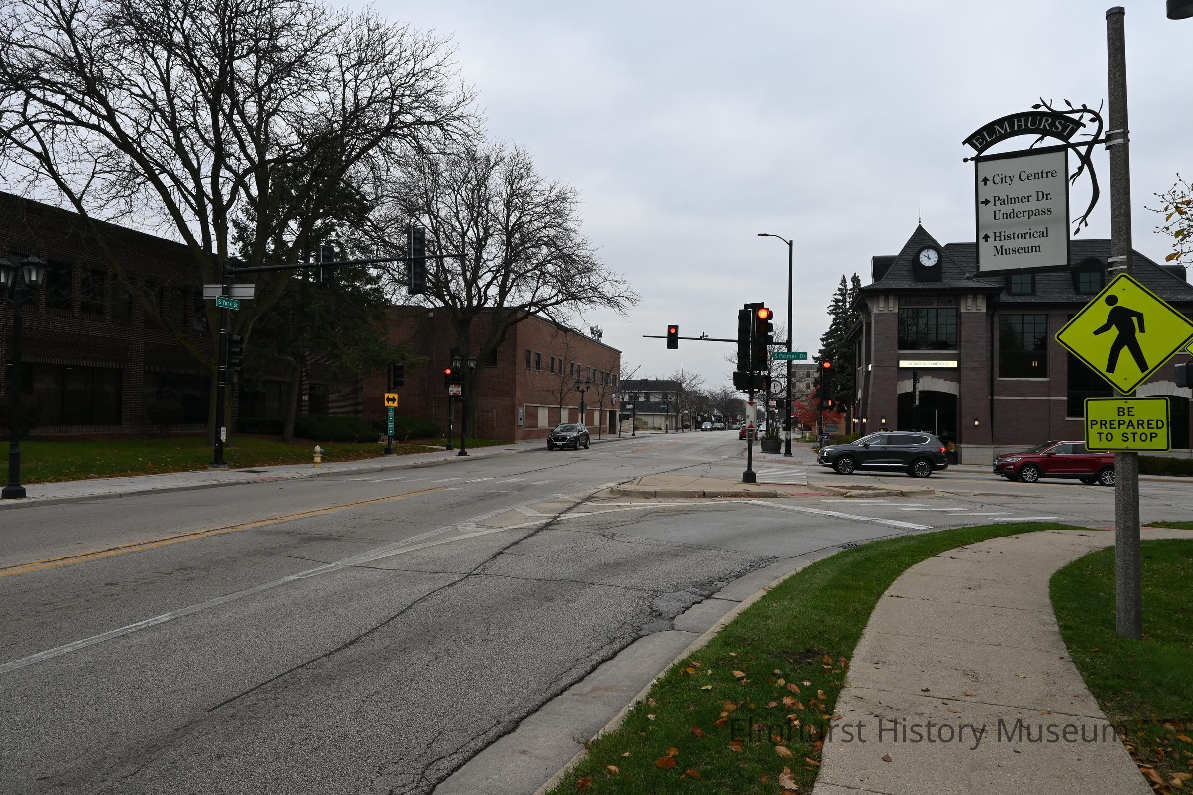 Intersection of York Street and Palmer Drive, looking north on S. York Street.Photograph Details