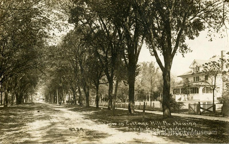 Looking north on Cottage Hill Avenue. Jacob and Emma Glos home on the northeast corner of Cottage Hill Avenue. Virginia Street is on the right.Photograph Details