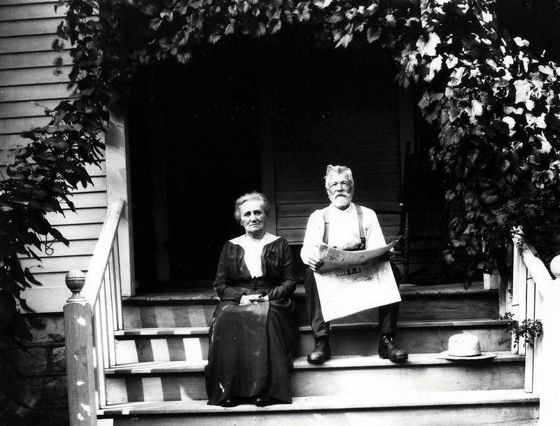 Jean-Pierre and Marie Steichen on the porch of the house at 269 S. York Street in Elmhurst. The parents of the photographer Edward Steichen and his sister Lilian (Mrs. Carl) Sandburg. Edward Steichen took the photograph.Photograph Details