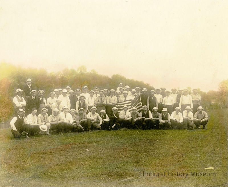 Color tinted photograph mounted on cardboard backing, members of Jefferson Barracks Club