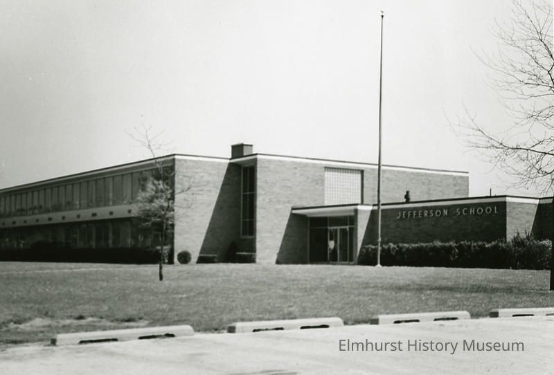 On back: Jefferson School, Poplar and Crescent Avenues (at IC RR tracks) / Taken May 21, 1966 by R.L. Mahon with Kodak Retinette (45mm lens) / Roll 3, Frame 16, Panatomic X Film