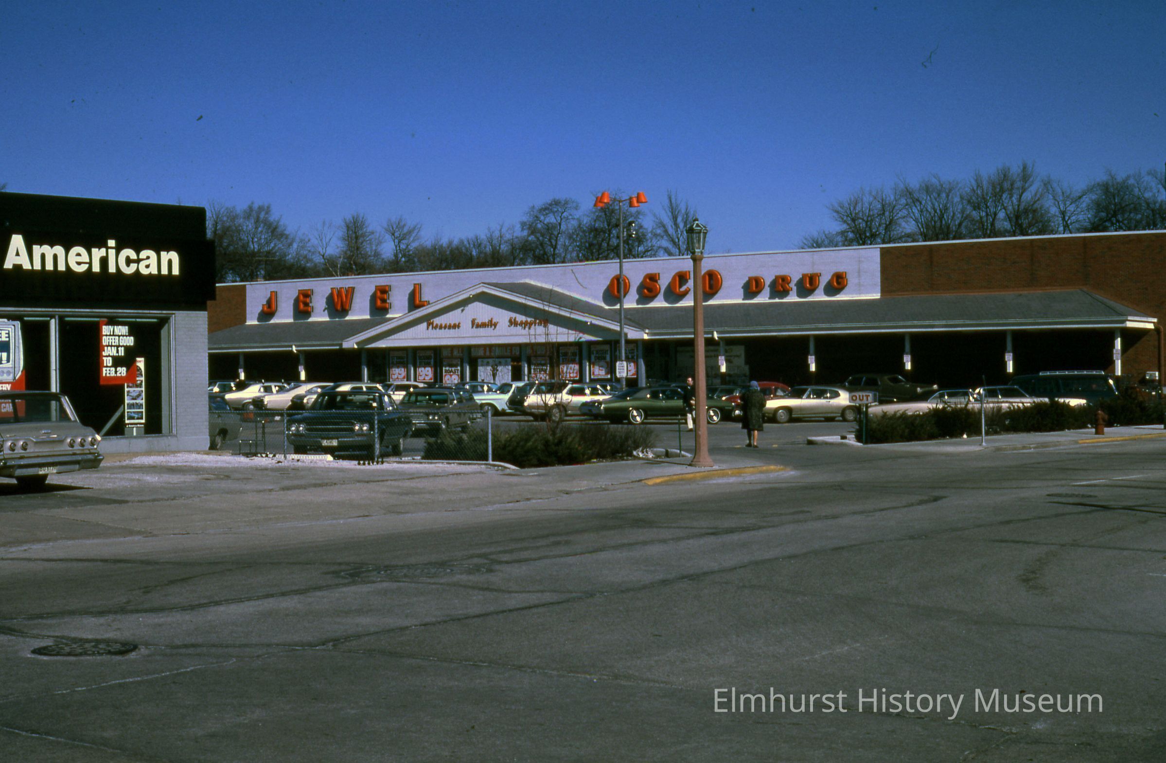 Jewel-Osco store at 153 Schiller Street, looking northeast. Shore American Motors at 131 Schiller is at left.Photograph Details
