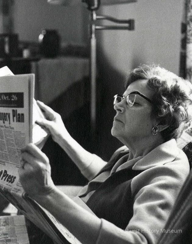 Katherine (Mrs. W. Russell) Palmer reading the Elmhurst Press newspaperPhotograph Details