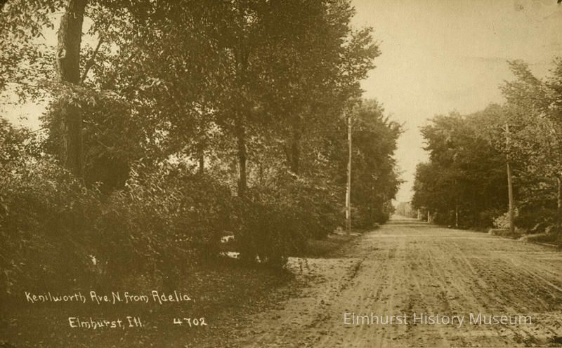 On back: Elmhurst Streets / Kenilworth Av. looking north from Adelia / Elmhurst Public Library / Elmhurst, IL 60126
