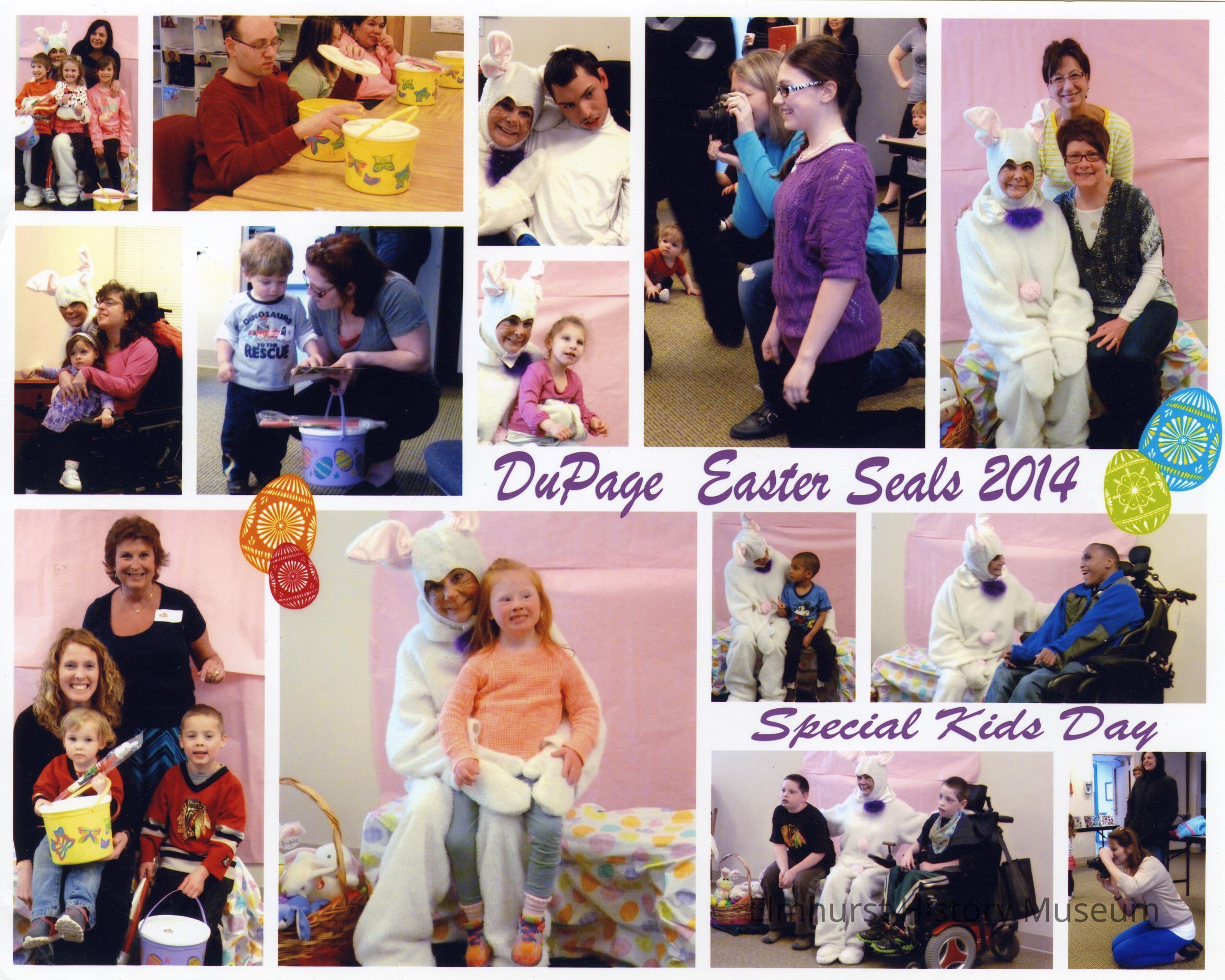 Collage of photographs from a Kiwanis Club of Elmhurst Easter event with the DuPage Easter SealsPhotograph Details