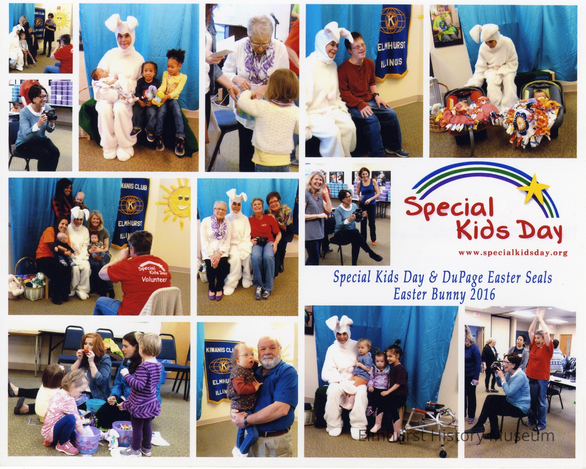 Collage of photographs from a Kiwanis Club of Elmhurst Easter event with Special Kids Day and the DuPage Easter SealsPhotograph Details