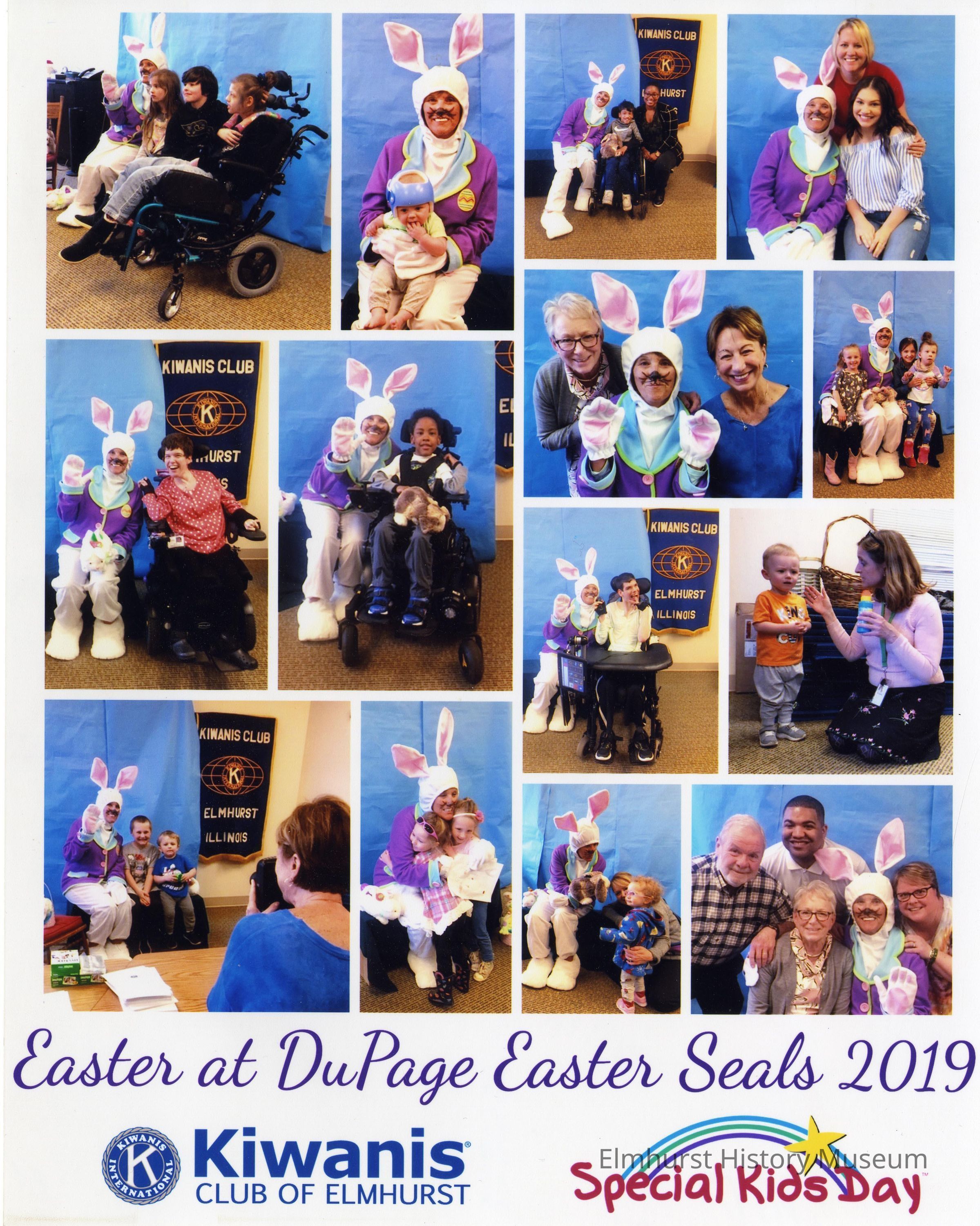 Collage of photographs from a Kiwanis Club of Elmhurst Easter event with the DuPage Easter SealPhotograph Details