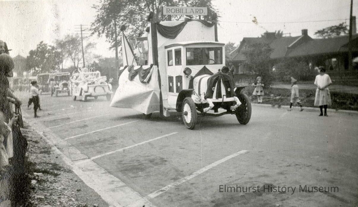 H.H. Robillard Funeral Home float on Park Avenue in the 1921 Labor Day Parade, celebrating the paving of York Street in downtown Elmhurst.Photograph Details