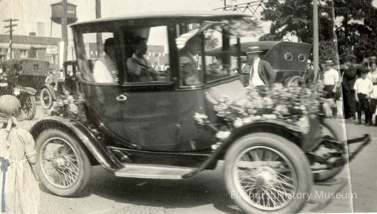 Decorated automobile on Park Avenue in the 1921 Labor Day Parade, celebrating the paving of York Street in downtown Elmhurst.Photograph Details