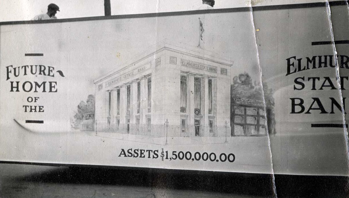 Elmhurst State Bank float on Park Avenue in the 1921 Labor Day Parade, celebrating the paving of York Street in downtown Elmhurst.Photograph Details