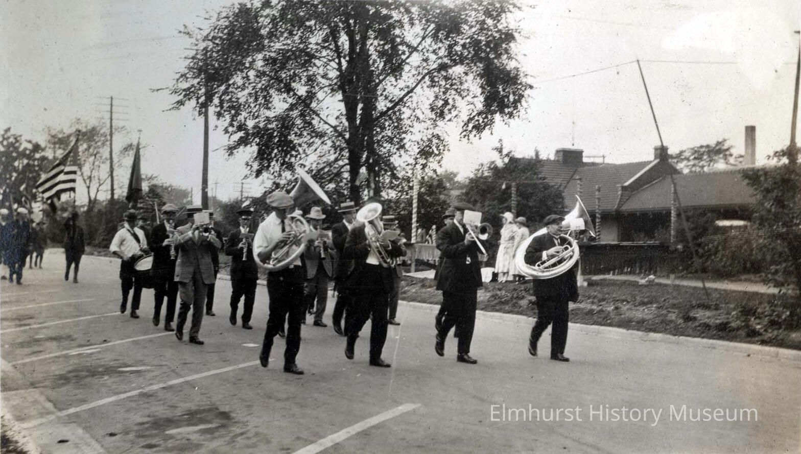 Elmhurst Boosters Club Band on Park Avenue in the 1921 Labor Day paradePhotograph Details