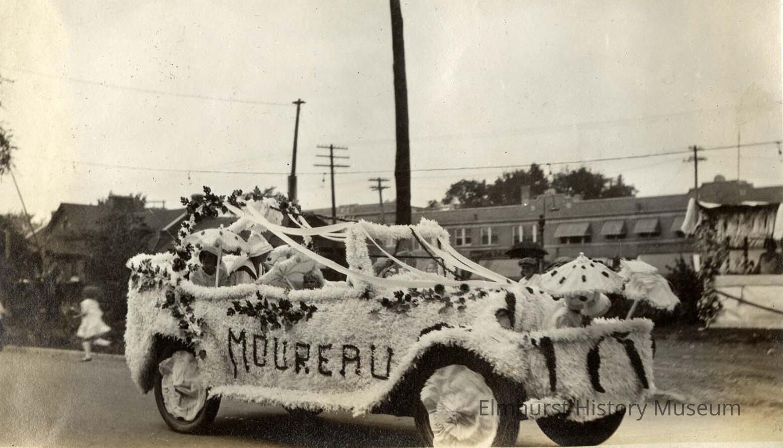 Frank Moureau float on Park Avenue in the 1921 Labor Day Parade, celebrating the paving of York Street in downtown Elmhurst.Photograph Details
