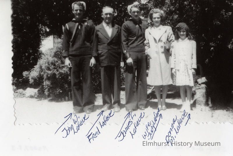 Identifications from left to right: John W. LaFave, Fred LaFave, James LaFave, Judy LaFave, Donna M. LaFavePhotograph Details
