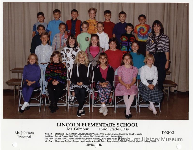 Lincoln Elementary School third grade class portrait, taught by Ms. Gilmour.Photograph Details