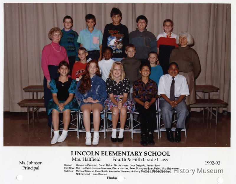 Lincoln Elementary School fourth and fifth grade class portrait, taught by Mrs. Halffield.Photograph Details