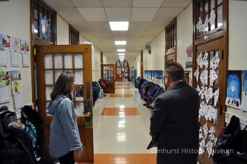 Interior hallway of Lincoln Elementary School at 565 Fairfield Ave. Principal Jennifer Barnabee and EHM Director Dave Oberg are in foreground.Photograph Details