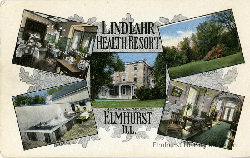 Postcard with collage of 5 color photographs of LIndlahr Health Resort, St. Charles Road and ProspectPhotograph Details