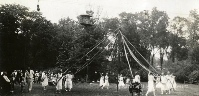 Women circling a Maypole on Lindlahr Sanitarium grounds.Photograph Details