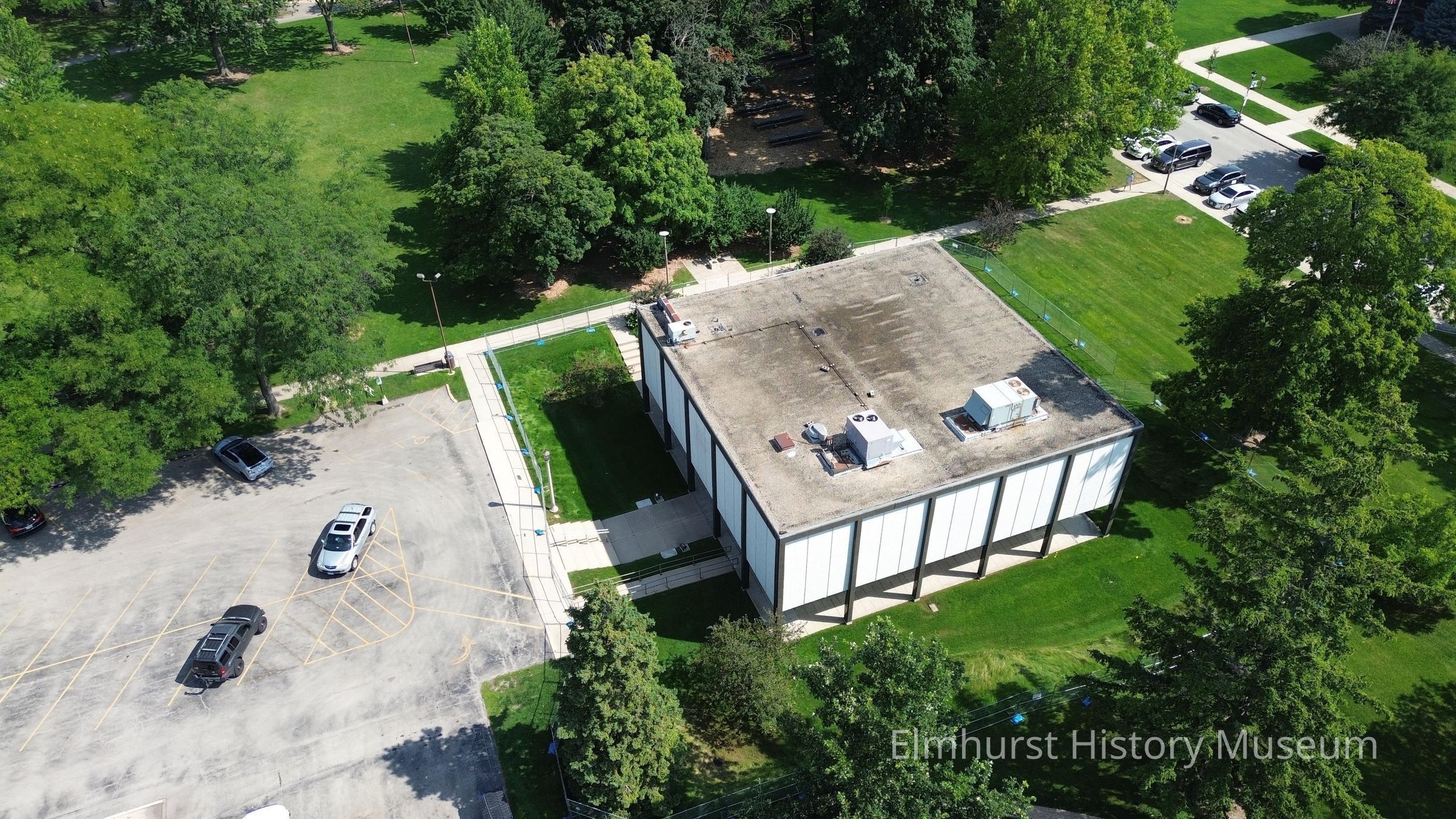 Aerial view of the former Lizzadro Museum building at 220 Cottage Hill Avenue, days prior to demolition.Photograph Details