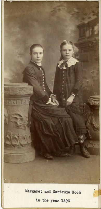 On back of photo: Margaret and Gertrude Koch in the year 1890.
