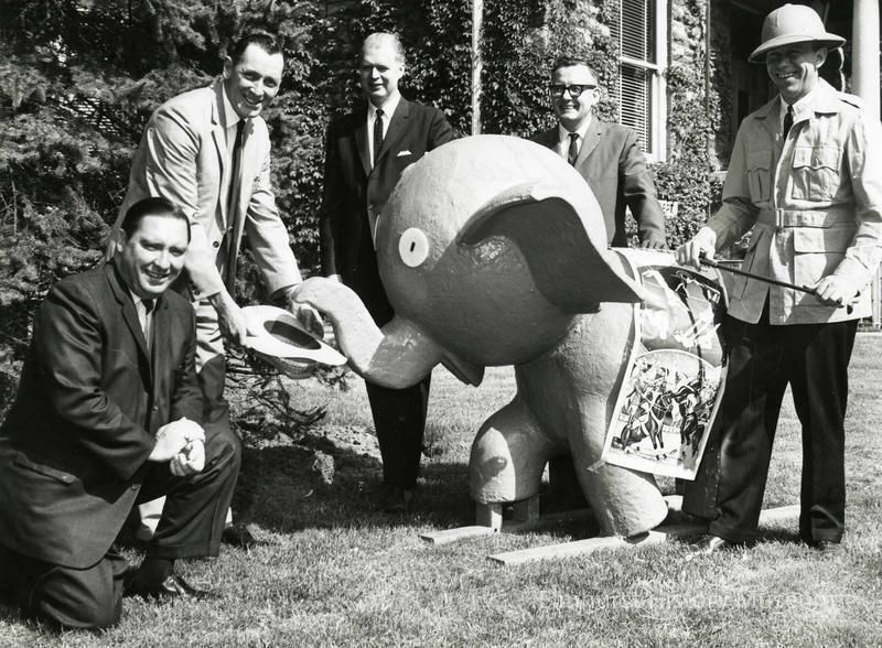 Mayor Charles Weigel, Jr. (on right) and Elmhurst Chamber of Commerce members promoting a circus sponsored by the Chamber.Photograph Details