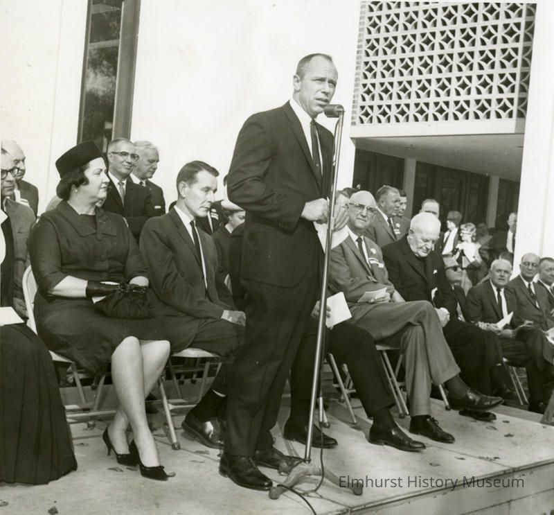 Penciled on back: Mayor Weigel is speaking / Dedication of addition to Elmhurst Public Library 1965.