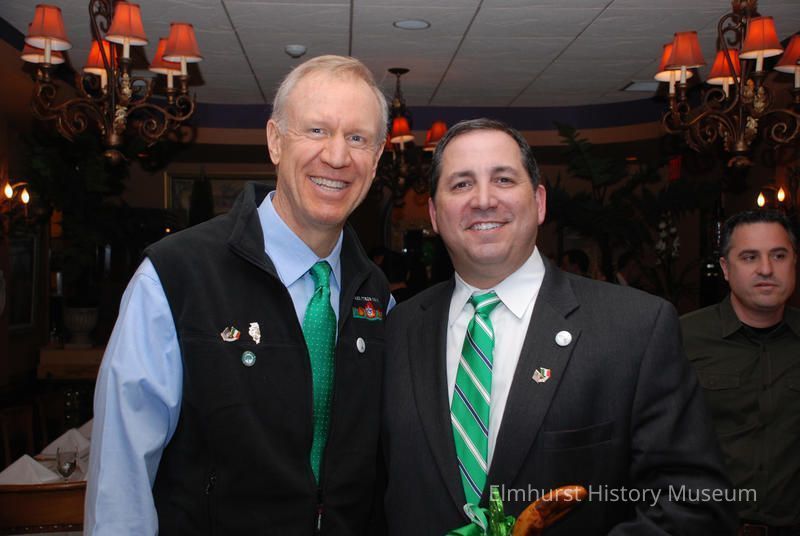 Elmhurst Mayor Steve Morley (right) and Illinois Governor Bruce Rauner following the Elmhurst St. Patrick's Day parade.Photograph Details