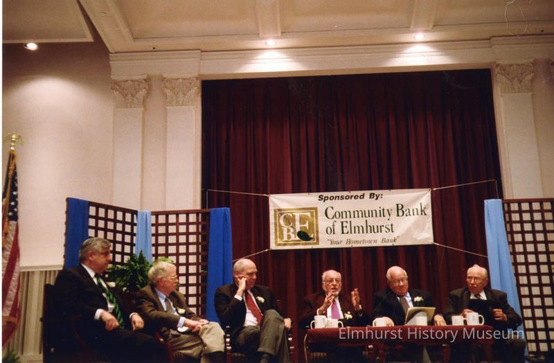 Current and five former Mayors of Elmhurst. They are identified from left to right as Thomas Marcucci (current), Charles Garrigues, Robert Quinn, Abner Ganet, Raymond Fick, and Charles Weigel, Jr.Photograph Details