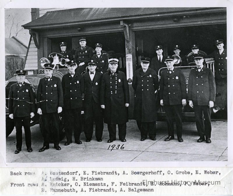 Elmhurst Fire Department posing in front of the fire station.Photograph Details