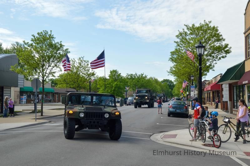 Elmhurst Memorial Day Convoy parade on Spring Road, part of a 16 mile route of military, police, and fire vehicles to replace the traditional parade due to Covid-19 coronavirus concerns.Photograph Details