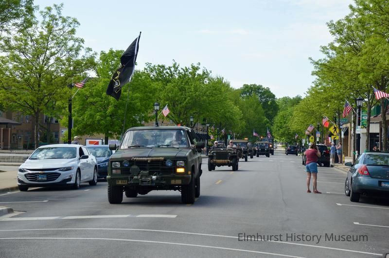 Elmhurst Memorial Day Convoy parade on Spring Road, part of a 16 mile route of military, police, and fire vehicles to replace the traditional parade due to Covid-19 coronavirus concerns.Photograph Details
