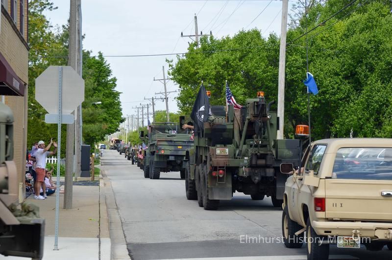 Elmhurst Memorial Day Convoy parade on Prairie Path Lane, part of a 16 mile route of military, police, and fire vehicles to replace the traditional parade due to Covid-19 coronavirus concerns.Photograph Details