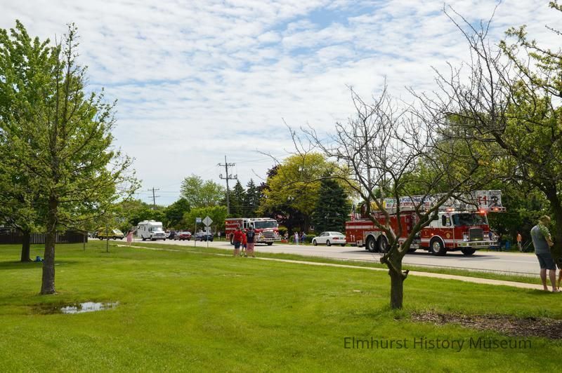 Elmhurst Memorial Day Convoy parade on Butterfield Road, part of a 16 mile route of military, police, and fire vehicles to replace the traditional parade due to Covid-19 coronavirus concerns.Photograph Details