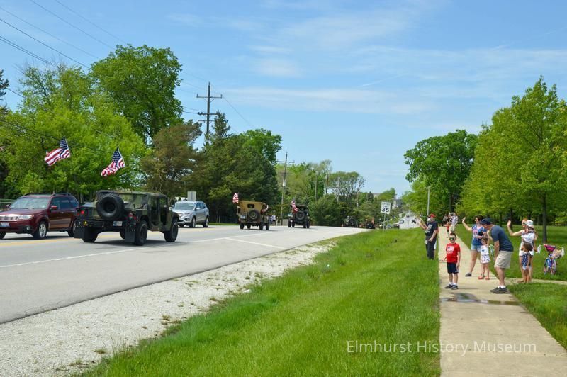 Elmhurst Memorial Day Convoy parade on Butterfield Road, part of a 16 mile route of military, police, and fire vehicles to replace the traditional parade due to Covid-19 coronavirus concerns.Photograph Details