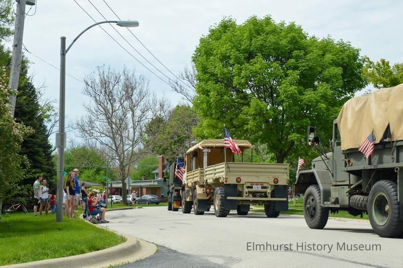 Elmhurst Memorial Day Convoy parade on Caroline Avenue near East End Park, part of a 16 mile route of military, police, and fire vehicles to replace the traditional parade due to Covid-19 coronavirus concerns.Photograph Details