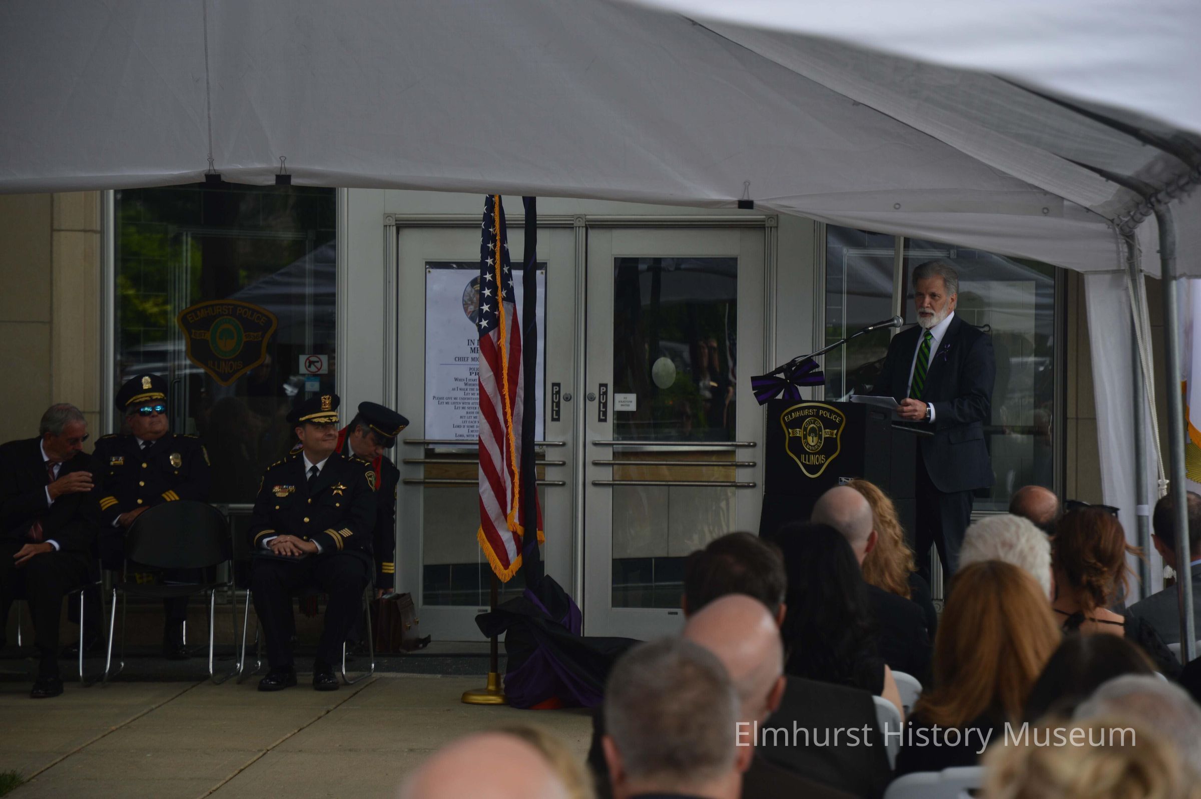 Elmhurst Mayor Scott Levin speaks at the memorial service for Elmhurst Chief of Police Michael R. Ruth, who passed away on May 30, 2022, at the Elmhurst Police Department at 125 E. First Street.Photograph Details