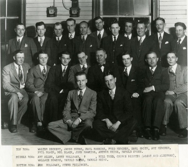 Group of men who regularly met at the Chicago Great Western Railroad Station on York Street in the late 1920s. They did not have a formal name.Photograph Details