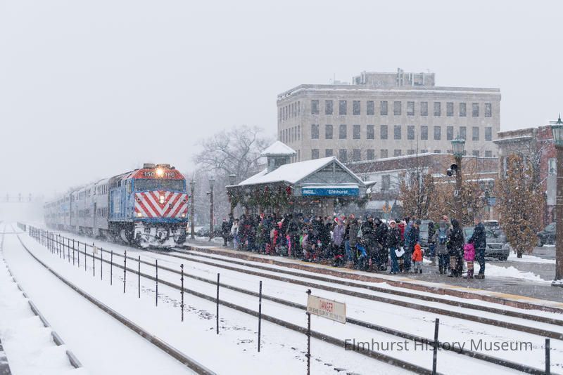 Metra Station shelter at W. Park Avenue, looking east. Snow scene.Photograph Details
