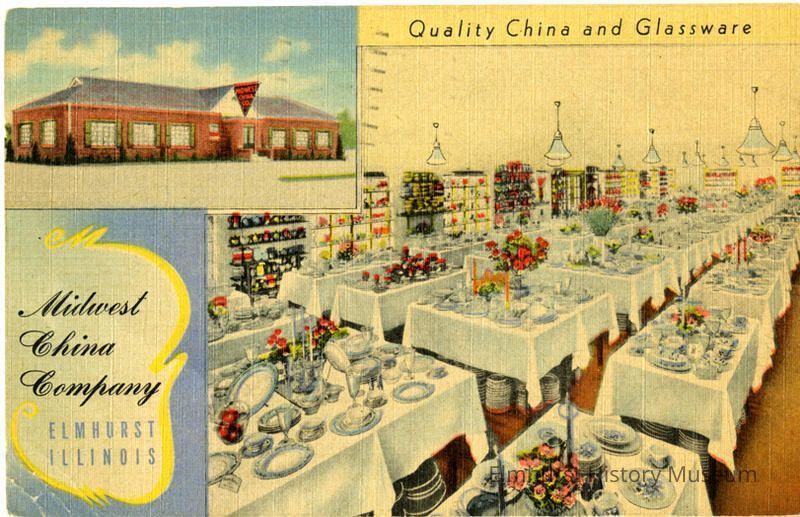 Midwest China Company on Lake Street. Card bears a cancelled 2-cent, red John Adams stamp and is postmarked "Chicago JAN 30 7 PM 1953." (Note: This postcard is a duplicate of M2008.9.1.)Photograph Details