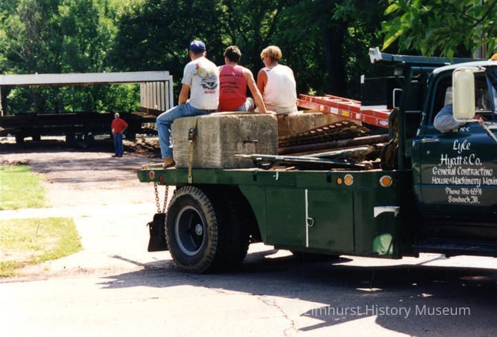 Side door of truck reads: Lyle / Hyatt & Co. / General Contracting / House & Machinery moving / Phone 786-6591 / Sandwich, Ill.