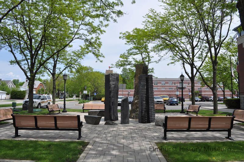 Millennium Fountain at 209 N. York Street in the Elmhurst City Hall courtyard. It was created by sculptor Dan Kainz, and it was dedicated in 2002.Photograph Details