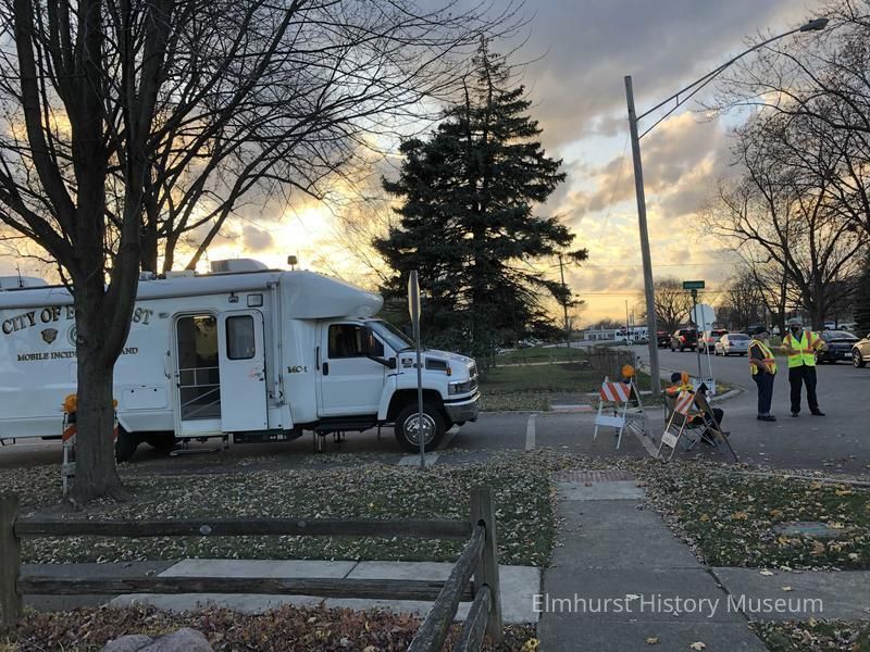 Elmhurst public works department assists at the temporary Illinois Mobile COVID-19 Testing Site at Churchville Middle School at 155 Victory Parkway.Photograph Details