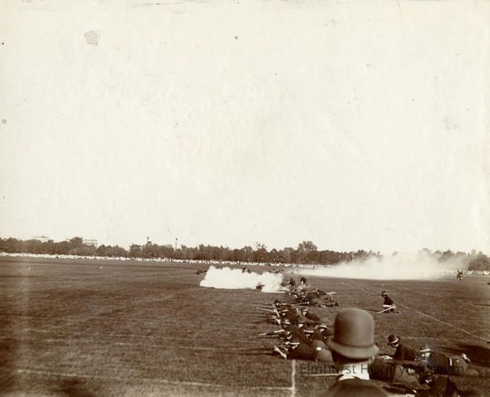 On paper affixed to back: O.G. Fischer Church Rd. R.F.D. #1 Bensenville, Illinois Photo taken 1898 Sham battle in Washington Park at the time of the GAR Encampment.