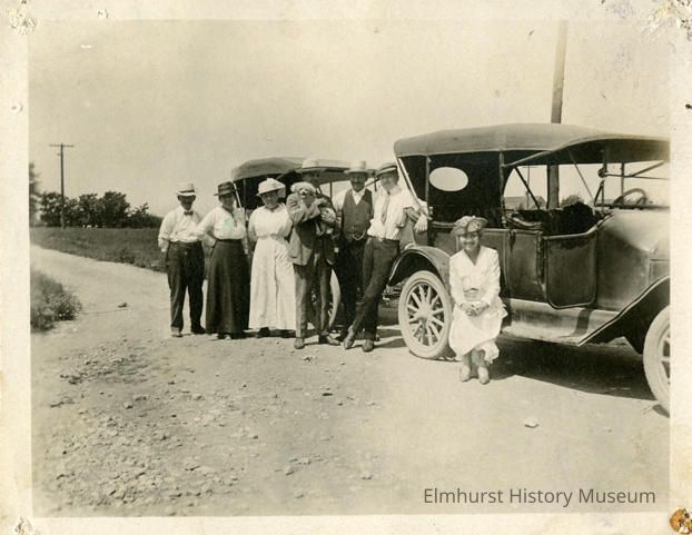 Noted on back: May & Prairie Ave - Elmhurst / Mr. & Mrs. H.B. Schneider - far left / Year 1901 Stamped on back: Elmhurst Historical Commission