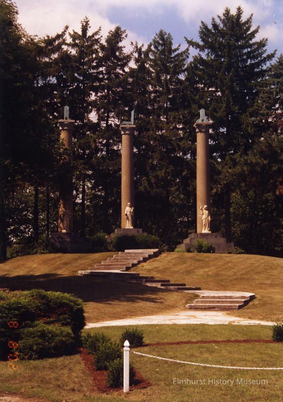 Statuary in Mt. Emblem Cemetery at 520 E. Grand Avenue in Elmhurst. The pillars represent Faith, Hope and Charity.Photograph Details