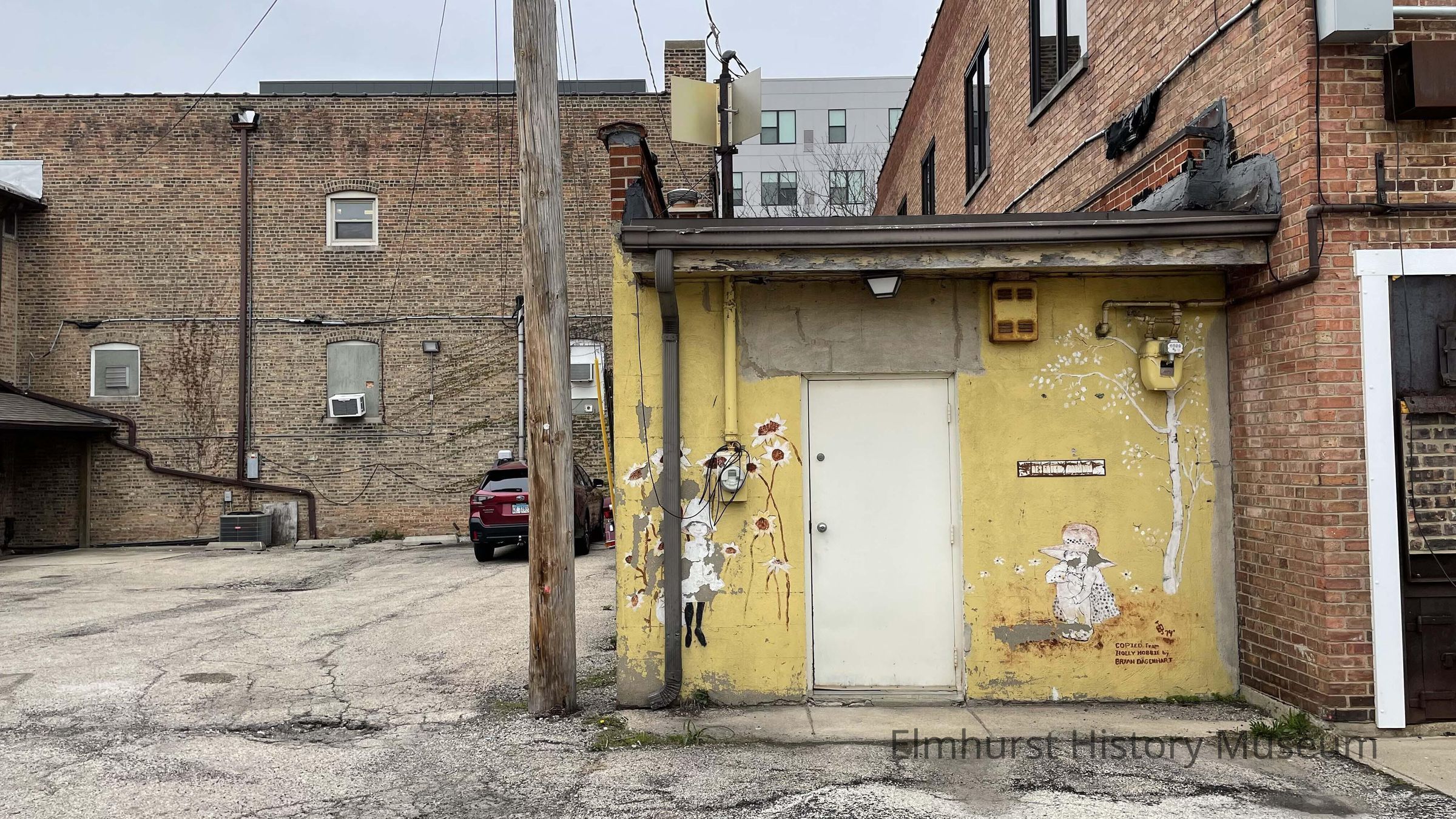 Mural behind the Christian Science Reading Room at 109 N. Addison Avenue, shortly before it was removed.Photograph Details