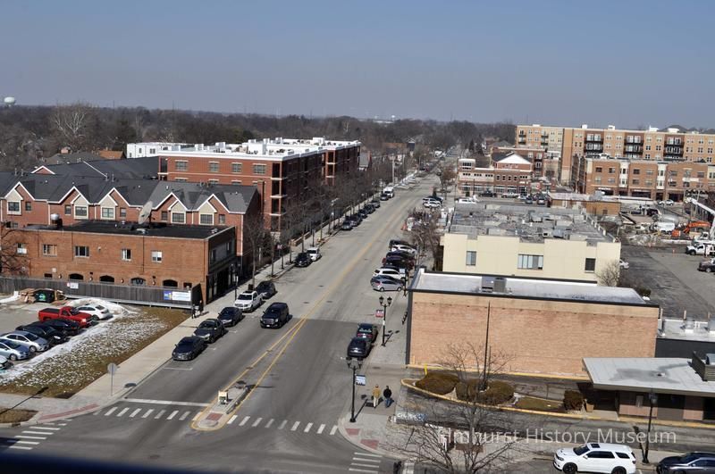N. Addison Avenue viewed from the Addison Parking Deck, looking north towards Third Street.Photograph Details